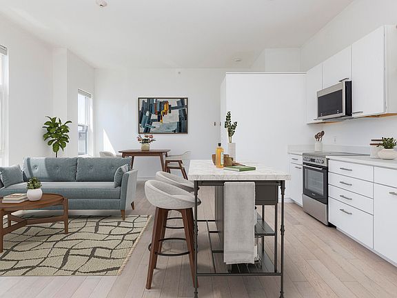Located in Portland's vibrant West End convenient to local eateries, shops ,art museum public transportation.... the list is long! This delightful sun filled modern condo in like new condition features an open floor plan, 10' high ceilings, wood floors, sleek kitchen and 8' tall windows. The spacious bedroom boasts an attached bath with laundry. Efficient heat pumps for heating and AC will keep you comfy all year round. Reserved basement storage is easy to access and this association is pet friendly. This thoughtfully designed 12 unit building by Archetype Architects was built in 2019 and makes use of every inch of space. Parking spot in nearby Dermot Court may be leased at 130 per month.