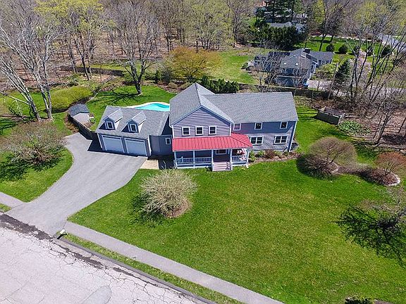 This spectacular colonial style home was custom built in 2013 & is set on a beautiful lot in highly coveted South Natick. 1st floor is wired for surround sound & offers beautiful oak floors, formal living room w/ custom built display shelves, family room w/ gas fire place, dining room & high end chef's kitchen w/ granite counters, stainless steel appliances, maple & cherry cabinets, mahogany eat at island & walks out to spacious deck & back yard. There's also a lovely 1st floor master suite w/ walk in closet & bath featuring double sinks w/ granite counters, tile walk in shower as well as laundry. The covered front porch is the perfect spot to view the sunset & is also sure to delight any visitor walking up to your door. 2nd floor offers 3 additional bedrooms, including a 2nd floor master option, & another family room. There's also a laundry room option as well as a walk in attic on the 2nd floor. The gorgeous back yard is fenced & boasts a lovely free form gunite inground pool.