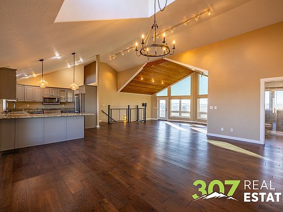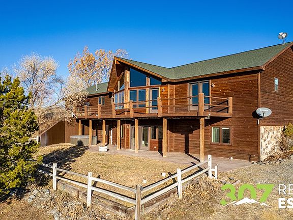 Discover the epitome of Wyoming living in this 4-bed, 4-bath gem just outside Cody. With panoramic views through expansive south-facing windows, this home on 5 acres boasts a beautiful open floor plan, featuring all-new flooring in the main living & kitchen area. A spacious master bedroom with a private porch. Fully remodeled 3/4 bath upstairs. In addition, the renovated basement offers a second beautiful kitchen with quarts counter tops and new cabinets, new carpet, and paint, along with a convenient second laundry area. The daylight basement floods the space with natural light and spectacular views. Just down from the home, plumbing is already roughed in, and the groundwork is laid for you to create a customized your shop space to suit your needs. A unique bonus – part of the property borders the Bureau of Reclamation, adding to the appeal of this exceptional home. Embrace the space, views, and convenience this property has to offer – your Wyoming oasis awaits.