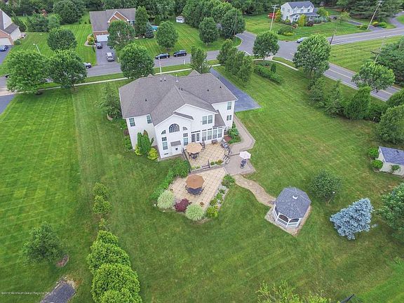 Classic colonial charm describes this North Howell(Freehold PO) home set on almost 1 acre of sprawling lush lawn. The two story foyer with Palladian windows welcomes you. The family room with soaring ceilings and a wall of windows draws you in to relax before the gas fireplace. It is your window to the four seasons and clear starry nights. Large kitchen with breakfast bar and center island provides plenty of counter space for the creative chef in you. Enjoy meals in the adjacent breakfast room which leads out to the paver patio. Enjoy lazy summer nights in the screened gazebo. Formal living room, dining room and office complete the first floor. After a long day retreat to the expansive master suite with private sitting room and en suite bath with soaking tub, double sinks and stall shower