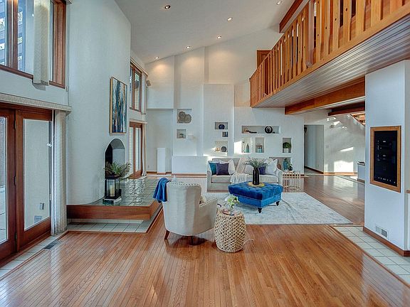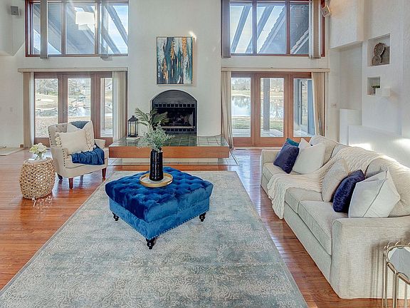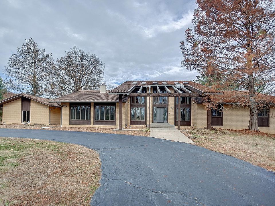 BACK ON MARKET AT NO FAULT OF SELLERS! Fall in love with this unique & spacious 4 bedroom, 7 bath ranch on 5+ acres! This astounding home offers hardwood floors throughout the great room/living room/dining room. Large great room w/skylights, high ceilings, wet bar & gas fireplace. Living room w/fireplace. The kitchen boasts an abundance of cabinetry w/large pantry. The main floor master suite features a generous walk-in closet & the master bath features dual sinks, tub & separate shower. It opens to the deck perfect for enjoying your morning coffee. There are another 3 bedrooms that share 2 full baths. Main floor laundry room. Upstairs you will find a loft that was converted into a library. The walkout basement is perfect for entertaining w/family room, gas fireplace, mini kitchen, 2 bonus rooms & 2 full baths. Immense storage area. All of the windows greatly expand the breathtaking view of the outdoors overlooking the lake. 4 car sideload garage. Patio w/pergola. Indoor garden areas.