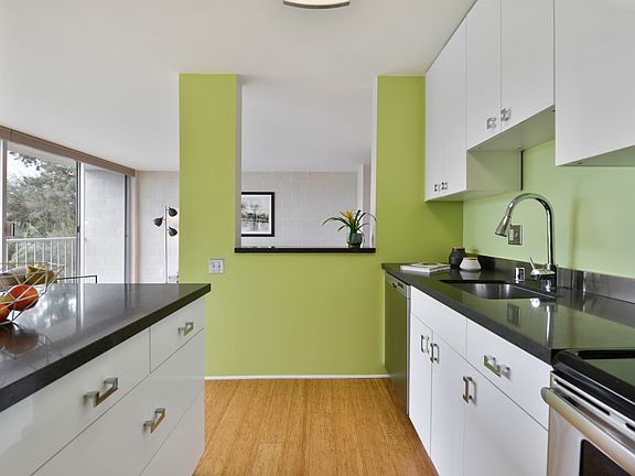 Move right in and begin your new life in the heart of Oakland! Floor to ceiling wall of windows open to spectacular view and provide lots of light. Tastefully remodeled by owner with eco-friendly materials.  This unit has a contemporary floor plan, with the kitchen opening to expansive dining area and living room. Listen to the birds sing while you enjoy the vista of the Oakland hills from the living area and view of the Bay and Mt. Tam from the bedroom. This sanctuary is just moments away from the countless urban amenities of Piedmont Avenue. UPGRADES -Bamboo floors throughout -Kitchen walls opened up for contemporary floor plan -Eco-friendly quartz countertops in kitchen and bathroom vanity -Stainless-steel appliances -Kitchen and bathroom cabinets replaced -Bathroom floor with recycled glass tiles -Bathroom vanity and sink replaced -Toto low-flow toilet -Light fixtures replaced -Heaters replaced and thermostats installed -Honeycomb insulating blinds in living room/ dining area FEATURES INCLUDE -1 bedroom, 1 bath, with plenty of closets -View of Bay and Mount Tamalpais from bedroom -Expansive view of hills through wall of windows -Private balcony -Inviting floor plan for entertaining -Community laundry room -Parking space in gated garage -Extra storage space -Secluded end unit with concrete walls -Freshly painted -Pets allowed LOCATION -Just three blocks to Piedmont Avenue -Near Grand Lake, Lake Merritt, and Temescal neighborhoods -Casual carpool and AC Transit a few blocks away -Walk Score® is 96! -Close to restaurants, cafés, movie theater, gelato, and grocery stores. Leave your car at home!