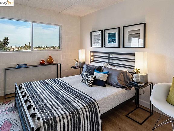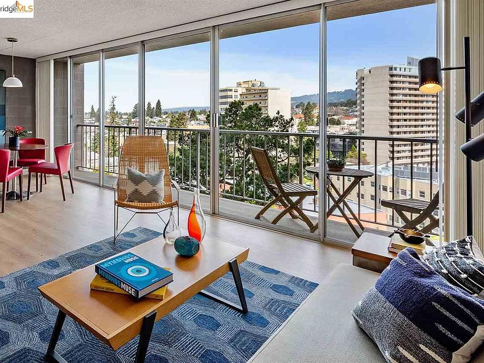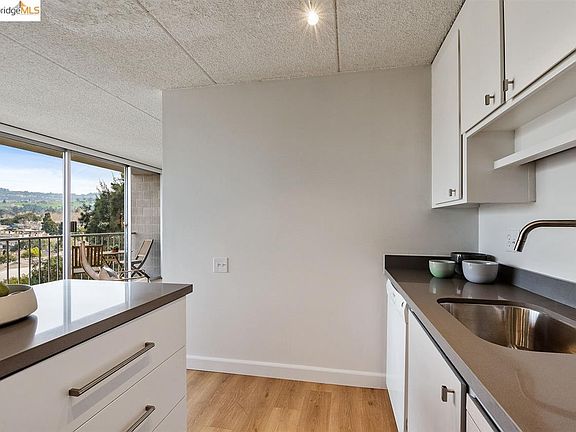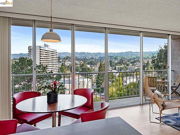 Look out to an amazing panoramic view of the Oakland hills with floor-to-ceiling windows in one of the area's most sought-after buildings near Piedmont Avenue. Nearby award-winning local cafes, boutiques, and restaurants only half a mile away. Tucked away in a quiet, safe cul-de-sac. The unit has been updated with an open floor plan. Beautiful new flooring installed throughout, and refreshed kitchen has brand new quartz countertops. A corner nook makes a convenient space for your home office, while the private balcony beckons you to enjoy the fresh air. From the bedroom, you'll have a view of the Bay and Mt. Tam. Comes with one deeded parking space, and dedicated storage space. Feast your eyes on the rolling green hills, treetop horizon and plenty of sky. Relax. You're home.