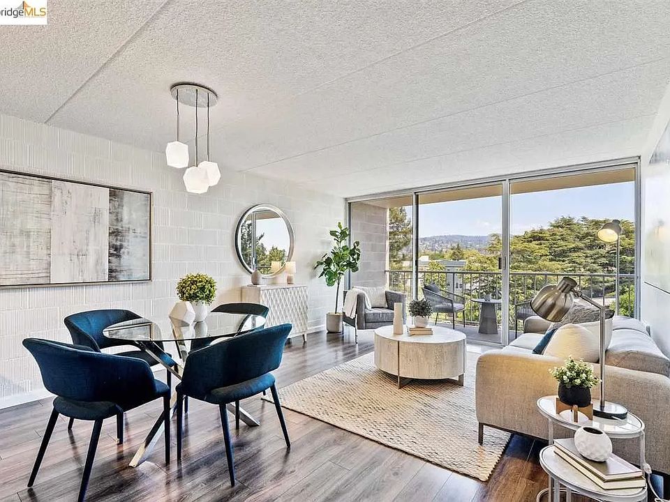Fully remodeled in 2022; pics provided are staged before the remodel [so now is better, with high end stove/fridge/countertop/bath]. Unfurnished. Security building on the Oakland-Piedmont border, blocks from the Theatre, 5 cafes, numerous restaurants, shops, SF downtown transportation, and Kaiser shuttles. Covered parking, laundry in bldg, no smoking. Walk-in closet, storage room, and amenities A long balcony, from living room to bedroom, highlights the splendid 5th floor view of the courtyard, with all glass on the condominium's east side. Super quiet because of solid masonry walls. Provide your current credit report to accelerate the application process. Owner pays water/garbage, HOA dues, and move in/out building fees. Provide me your email and I'll get you more info. Tours available daily, for move in date as we coordinate. Tenant pays for PG&E