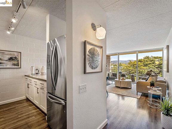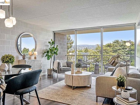 PRICE REDUCED! Open Sunday. Enter through the front door and take a deep breath as you look towards the floor-to-ceiling windows with a view of the Oakland hills. From the bedroom, you'll wake up to see redwood trees in the courtyard. A private balcony provides indoor-outdoor flow. The kitchen has been fully remodeled with quartz countertops, stainless steel LG appliances, convection oven, soft-close cabinets, and contemporary large tile backsplash. Similar bathroom upgrades provide consistent appeal. Laminate flooring and geometric-shaped light fixtures add practicality and design flair. You'll find plenty of closets, including an enormous walk-in closet. Kelton Court is a highly desirable building nestled on a cul-de-sac, close to transportation, yet only three blocks away from Piedmont Avenue. Enjoy the wide variety of restaurants, cafés, grocery stores, and eclectic shops close by. Comes with a deeded parking space in the gated garage, and dedicated storage space. Move right in!