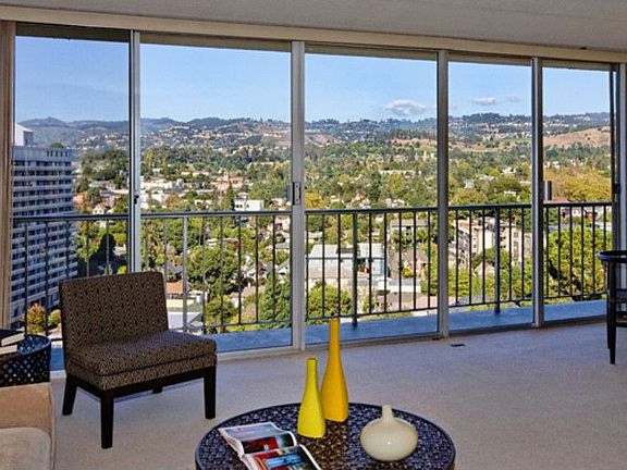 Rare upper floor unit available! Spacious 1-bedroom condo with great floor plan. Walls of glass open to dramatic view and provide lots of light. Landscaped garden adds to the beauty of this well-maintained building. Secure parking garage. Lots of closets. Additional storage space. Piedmont Avenue, with its cafs, restaurants, shopping, gourmet groceries and movie theater, is just a few blocks away. Great location! FEATURES INCLUDE: Spectacular view of Oakland hills B...