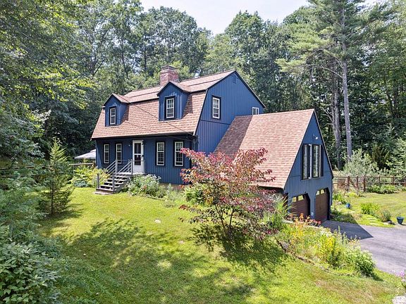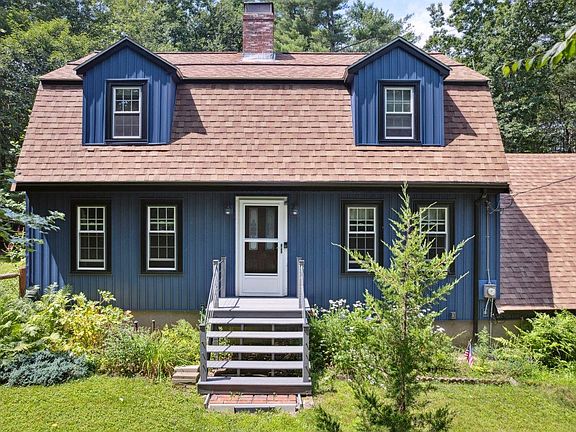 This meticulously maintained 3-bedroom home is located at the end of a cul-de-sac, on a 1.15+/- acre lot, surrounded by mature trees and beautiful landscaping. The first floor features an updated eat-in kitchen with rounded-edge granite countertops, a formal dining room with cathedral ceilings, and a tucked away living room with fireplace. Extending off the kitchen is an open concept area featuring a bright sunroom, a comfortable sitting area with pellet stove, and french doors opening up to a 4-season room. This space has a wet bar, bar top with seating, wrap-around floor to ceiling windows and skylights. This ideal space for entertaining leads directly outside into the shaded backyard. Custom stairs from the sitting area lead to the second floor with primary en-suite, 2 additional bedrooms, a shared hall full-bath, and private office. 2-car garage and lots of storage in the basement. Many updates. Plenty of privacy and space to entertain. Fenced in yard and pet door for the furry friends, too! Just off Route 111 and minutes to the MA border. Great location for commuters or working from home. This house has it all.