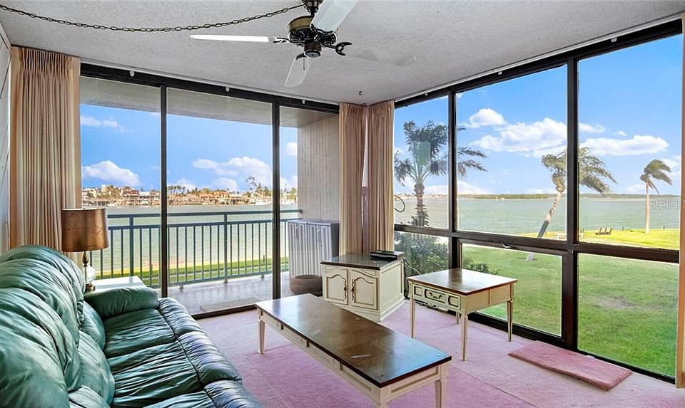 Rarely available - a THREE Bedroom / 2.5 Bath CORNER unit condo - almost 1500 sq ft - Multiple Balconies, DIRECTLY overlooking world-famous Johns Pass... "Socially Distance" yourself in a Residential RESORT! in a GATED Community - on a "Private Island" - with a secure under building parking spot - and ALL THE AMENITIES you would find in a RESORT! Start with a Walking Path like none other! a Private MARINA with one currently avail boat slip rental (under $4/ft/mo- offering protected deep water and IMMEDIATE access to The Intracoastal Waterway and Gulf of Mexico!!) Tennis Court; Fitness Center; "Game Room" with Billiard and Ping Pong; shuffleboard; Tiki Hut w/water and an ice machine - HEATED (and cooled) POOL; SPA; Saunas; and the list goes on!! - Back Inside , you'll enjoy the privacy of a "Split" Bedroom Plan (with really 2 Master 'en-suite' Bedrooms); Kitchen with Granite Tops and Stainless; full size washer-dryer hookups in your laundry area on the "Kitchen's Balcony"; an extra 1/2 bath; a wet bar - all ready for a few of your "final touches"...HURRY on this opportunity!! Assn Rules say PETS are OK, but "Sorry, no dogs"....