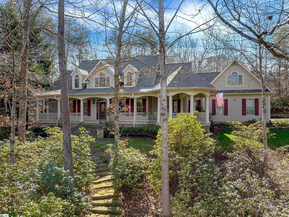 Nestled in the mountains just minutes from Greenville, SC, make yourself at home in the comfort and convenience of The Cliffs Valley gated golf and wellness community. 1 Kingshead Road is a true gem, boasting stunning curb appeal with natural landscaping and a private location that is tucked away from the road by mature hardwoods, mountain laurel, and rhododendron. With incredible walking convenience to the Valley wellness center and a short drive to the clubhouse and golf course, this home is situated in the perfect location to enjoy all of the community's world-class amenities. Plus, the nearby Terry Creek members-only gate provides easy access to old Highway 25, connecting you to Greenville, Travelers Rest, and Hendersonville. At just over 3,400 square feet, this Cliffs Valley home is the epitome of low maintenance. It offers exceptional main level living spaces that include a generous, combined kitchen/breakfast room, a great room with a gas log double-sided fireplace, and a formal dining room. The kitchen features quartz counters and an island with a 5 burner gas cooktop, wine cooler, and double oven. Plus, the surround sound pre-wiring on the main level makes this home perfect for entertaining. Recent notable improvements have been made as of January 2024. The primary bath now boasts a new shower and lighting, enhancing both functionality and aesthetic appeal. Many interior areas, including the kitchen, pantry, and laundry, have received a fresh coat of paint. These thoughtful renovations elevate the ambiance and comfort of the living space, ensuring a welcoming atmosphere for residents and guests alike. The sizable primary bedroom also resides on the main level with a walk-in closet, fireplace, direct access to the deck, and a plush full bath including a walk-in shower and separate jacuzzi tub. The deck overlooks the backyard and features a roaring waterfall feature/koi pond that is perfect for relaxing and enjoying the tranquil setting. The deck is also accessible from the great room and walks out to the backyard. The upper level features an oversized bonus room, two en-suite guest bedrooms, and significant storage space with many closets. The bonus room is ideal for a hobby room, media room, or bunk room for grandkids. Additionally, the house has an oversized two-car garage and a gas water heater with a recirculating pump for instant hot water. Overall, this home is perfect for those who want to enjoy the luxurious Cliffs Valley lifestyle without worrying about the upkeep of a large home. With incredible outdoor living spaces, including a wrap-around covered front porch with a gazebo sitting area, and a private location that offers the ultimate in peace and tranquility, this home is a must-see for anyone looking for a retreat in the mountains. A Club membership at The Cliffs is available with this property giving you access to all seven communities.