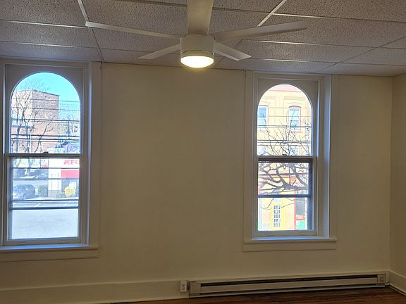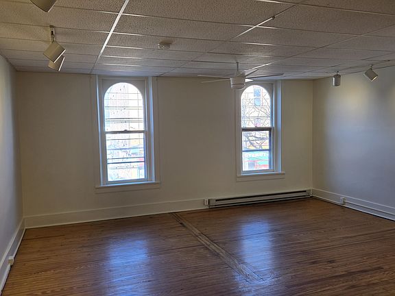 This is a very big L shaped studio with a seperate kitchen and bathroom. Freshly painted with hardwood floors and good closet space, the big windows look out onto Main Street. Located in the Historic Wallace Building in Downtown Stroudsburg, it is located on the 2nd floor. There is a secure entrance and laundry in the building as well as a well lit parking lot. This is a no smoking building, sorry no dogs. Rent includes water, sewer and trash. Tenant pays for electric (heat & hot water) and cable/internet.
