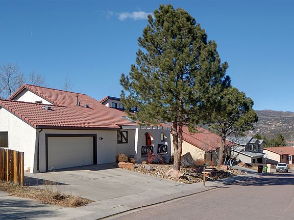 Enjoy Garden of the Gods & mountain views from this lovely Spanish style home located at the top of Crystal Hills. Features tile roof, stucco exterior, dramatic archways, wood floors throughout main level, skylights, gas fireplace, updated kitchen w/ granite counters & stainless appliances, finished W/O basement w/ large family room, bedrooms & private bath, spacious master w/ attached 5-piece bath & deck, A/C, Radon system & beautifully landscaped yard. Backyard is private and scenic with gorgeous mountain and rock formations all around, and includes privacy fence, wood deck, concrete patio, auto sprinkler, lush lawn, flowering shrubs, shade trees and even a veggie garden! Metal playset is included but can be removed if buyers request. Great location...walk to nearby trails and open space!