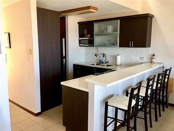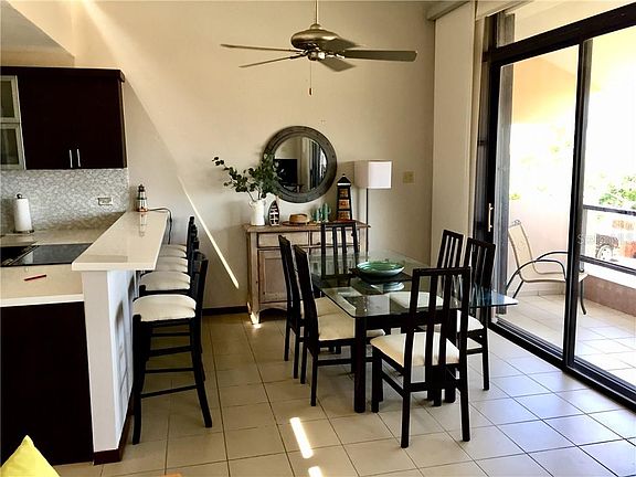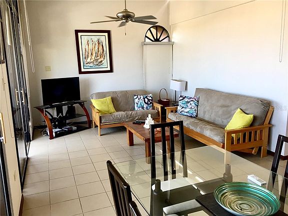 Excellent apartment with a Panoramic view in the beautiful Resort of Palmas Del Mar, located in the South part of PR. It has one bedroom and 1 bathroom, remodeled kitchen, equipped with range, refrigerator and a dryer/washer combo. The dinning and the living room combo are furnished with a six chair dinning table, two futon sofa, an inverter split unit a/c and 4 stools. The bedroom is furnished with a queen size bed, night table, a dresser and a split units a/c. All windows and sliding doors has roll-on curtains. The balcony sliding doors has sliding hurricane shutters.
