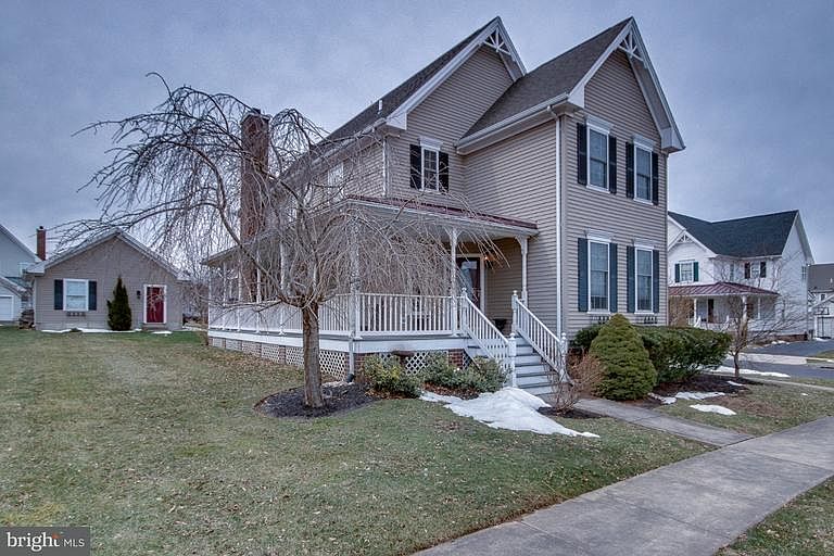 Desirable Ivyland Village in Ivyland boro is the perfect location for this Victorian 2 story home which features Open first floor plan.Large front and rear porch with metal roof. Front porch Entry with Etched oval glass door leads into large livingroom/parlor with oak hardwood flooring that runs from the foyer area through the kitchen and spacious eating area. Living Room/Parlor with neutral carpet and ceiling fan. Beautiful custom picture molding and chair rail millwork with custom crown molding throughout entire home.Dining area is off of living room and continues with neutral carpet and triple bow window. Gorgeous Eat-in Kitchen with center island seats 3 and features Solid wood Glazed white finished raised panel doors and custom crown molding , Gas range, overhead microwave, built-in dishwasher and recessed lighting. Kitchen opens into 2 story eating room with sliding glass door to the side porch w/composite decking. Eating room opens into the gracious Family room with wood burning fireplace and custom mantel& oversized windows with transoms to each side of the fireplace,Custom plantation shutters and custom crown molding.Dramatic Two story open staircase off the eating room w/ crown molding to open 2 story landing, with natural light from 2nd story windows, adds to the wow factor of this beautiful home! Upstairs, Master bedroom is spacious with Cathedral ceiling, ceiling fan & Large walk-in closet. Master bath off bedroom with tile floor, double sink and soaking tub with tile backsplash and separate shower.The additional three bedrooms, all with double door closet, ceiling fan and neutral carpet. Hall bath is tastefully done with with trim and tile flooring. Finished basement with recessed lighting, built-in shelving and cabinet and Berber carpeting. The porches on this lovely home is perfect place to sit and relax. Large front side wrap around porch and back covered porch to back yard.Corner property with ample parking,Sidewalk extends from wrap-around porch t