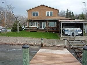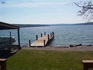 A rare find: Year-round Cayuga lake house with completely level access, boat hoist into boat port, dock, lawn and walk-in beach facing south, with distant views of Ithaca. Add a paved drive, 2-car garage, municipal water, natural gas and an extremely well-built home! Walk in to the open kitchen/dining/living rooms, with lake views everywhere exceptional from the big front deck and porch! Three bedrooms, 2 full baths, and more.