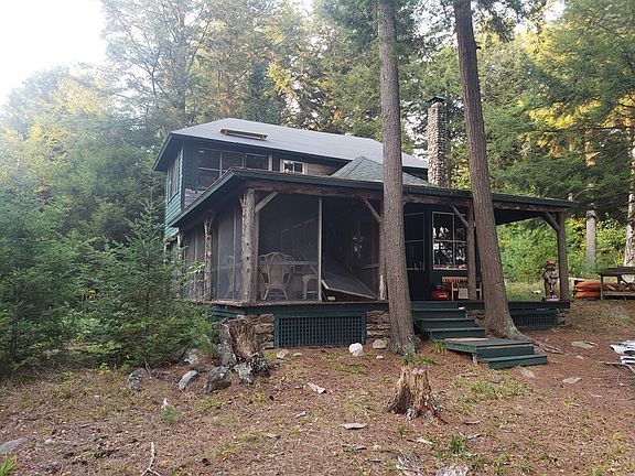 An incredible point of land that offers sunrise and sunset views with substantial shoreline. The property has rolling topography with massive trees. The seasonal camp is over 100 years old and has the old classic style. There is a beautiful cove for the dock and a beach to enjoy swimming and launching canoes and kayaks. The current owner uses the Raquette River Boat Club docks and is willing to transfer their reservation. A premiere property on Lake Simond/Tupper Lake.