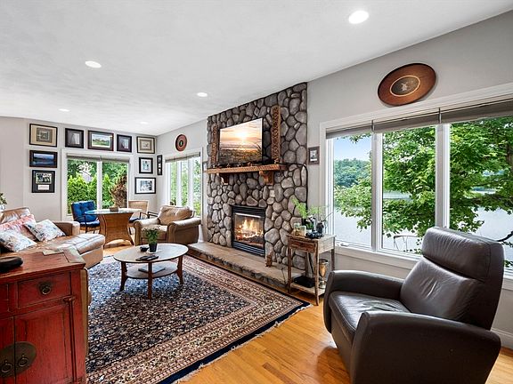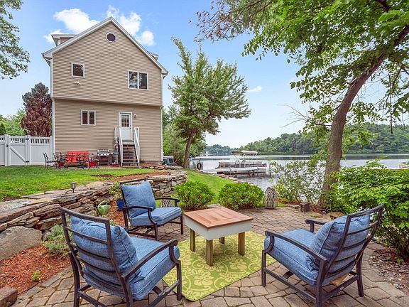 Experience peaceful living in this stunning waterfront home. Featuring 3 spacious patios, an outdoor jacuzzi, and a meticulously landscaped yard adorned with circular patio design and art. Step outside to discover a dock, a cozy fire pit, and signed artwork by Markus. Multiple windows throughout the home frame the picturesque views of the landscaped back yard and serene lake. The open layout is enhanced by lovely wood cabinets, granite countertops, and new stainless-steel appliances. The first floor is illuminated by recessed lighting and features hardwood floors throughout. The second floor boasts 2 generously sized bedrooms, along with additional space that can be customized as a sitting area, office, or bonus room. Master bedroom with hot tub is a true retreat. Architecturally designed windows add to the charm of this special home. Whether you seek recreation, entertainment, family living or just peace of mind, this home has it all!