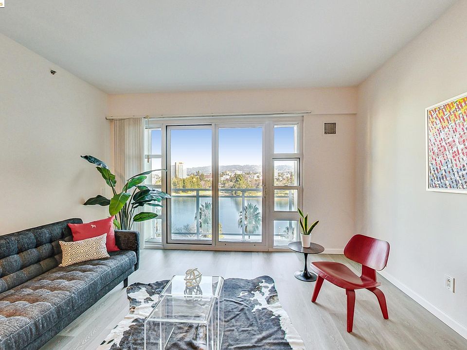 The Essex is a Luxurious & Sophisticated Condominium on the shores of Lake Merritt in Oakland. Enjoy the comforts of an urban vibe and effortless lifestyle - conveniently located by Lake Merritt’s natural surroundings and downtown Oakland’s dining and boutique shops. This stunning 1-bedroom, 1-bathroom, plus flex-space (office/den) with new LVP flooring, new carpet, new kitchen appliances, and new paint. Corner unit with no neighbors on one side, bright, and quiet unit with a living room balcony with direct views of Lake Merritt, pool, Oakland downtown and hills. 1 parking space in a secured garage, HOA amenities: 24/7 lobby front desk; Pool; Spa; Fitness Center; Library; Conference Room + more. Conveniently located near BART and public transportation.