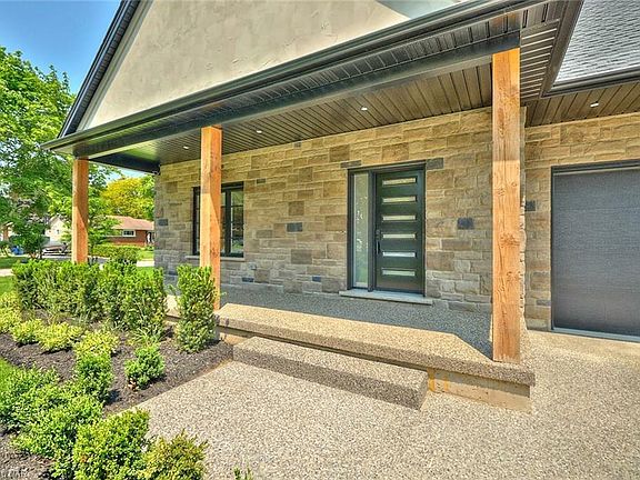 Stunning custom built stone and stucco bungaloft in highly sought after North-end location just steps to Lake Ontario, beaches, the Waterfront Trail, and all amenities. This new home offers 3+2 Bedroom, 3.5 Baths, a main floor master suite, wide plank hardwood flooring, and a fully finished basement. The gorgeous kitchen features quartz counters, large waterfall island, high end stainless steel appliances, with 36†gas range, a wine closet with custom glass doors, vaulted and beamed ceilings. The open concept great room offers a dining space and living room with a grand floor to ceiling gas fireplace and custom built ins. Double doors off the dining area lead to a low maintenance, fully fenced yard with covered deck. The main floor master suite features a walk-in closet and 4pc ensuite with double sinks, a custom curbless glass shower with rainhead and handheld shower, heated floors and modern gold fixtures/accents. A 2pc bath, inside access to the garage, and a convenient main floor laundry complete the main level. Partially overlooking the great room, the upper level loft features 2 generous sized bedrooms, and a 4pc bath with ensuite privileges. The basement is fully finished and features a large rec room with custom built electric fireplace and a wet bar with quartz counters, an oversized sauna, 2 large bedrooms and a 3pc bath with custom tiled shower. Other high end features include: exposed aggregate concrete driveway, lawn sprinkler system, in-ceiling speakers, custom vents, central vac, window coverings, stone counters throughout, covered front and rear porch, and professional landscaping. Property taxes to be assessed.