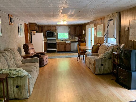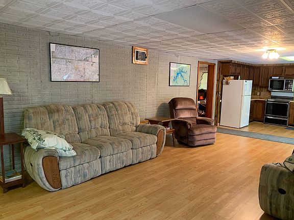 2 bedroom, 1 bathroom concrete hanger home is located in Albany, Kentucky in the Spring Creek Air park on 0.42 Acre. Open concept floor plan with the kitchen, dining room and living room. Featuring a 1 car garage in the lower level of the home and has stairs to the access of the hanger area. The hanger area is approximately 41.5 X 26.5. This home comes furnished including kitchen appliances and Washer/Dryer. The wood burning stove is no longer operable as the chimney with removed when the roof was replaced in 2017: (Metal roof was placed over the original roof.) The residential home is located near Dale Hollow Lake and is only a short drive to Wolf River Dock and Marina. For further information and your private showing today,