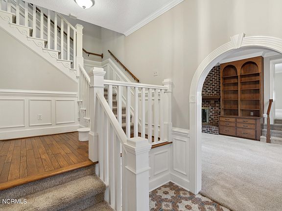 - Master Downstairs, Walk-in Closet(s), High Ceilings, Entrance Foyer, Mud Room, Solid Surface, Bookcases, Kitchen Island, Wet Bar, Blinds/Shades, Gas Log, Walk-In Closet(s), Workshop
