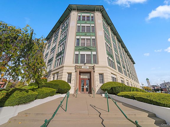 Perched atop The Landmark — a storied 1923 brick building in the heart of downtown Port Chester — this freshly painted duplex perfectly blends industrial character with modern design. Step inside the entry level to find a spacious hallway, a sleek full bath, and a serene bedroom with generous closet space and sliding glass doors that open to a huge private terrace. It’s the ideal spot to start your day with coffee or unwind with cocktails at sunset. Upstairs, sunlight floods through oversized windows into an open-concept living and dining space, giving true loft-like energy. The updated kitchen features crisp white cabinetry, quartz countertops, and stainless steel appliances — including a gas range. This home is all about effortless indoor/outdoor living and modern comfort, wrapped in the character of a prewar landmark. Residents enjoy amenities: a 24-hour doorman, fitness center, elevator service, landscaped pool, and an assigned covered garage space. Just steps from the Metro-North, Port Chester’s vibrant restaurant and music scene, parks, and shops — this is your chance to live like a city dweller with suburban breathing room.