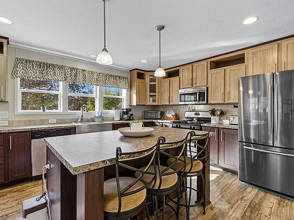 The perfect blend of comfort and convenience is waiting for you here in this meticulously maintained 2017 manufactured home, ideally situated in the desirable, resident owned Bear View Crossing Cooperative. The home features a spacious and open floor plan with 3 beds and 2 full baths. The heart of the home is a generously sized kitchen, boasting SS appliances, a large island and tons of cabinet space, perfect for cooking and entertaining. The kitchen opens up to an eat-in dining area and a large, bright and airy living room. Down the hall you’ll find a primary suite complete with walk-in closet and private bathroom, two secondary bedrooms, an additional full bathroom, and a laundry room with access to the freshly stained 12x14 deck. Outside you’ll find exceptional outbuildings for all your storage and project needs: a 12x12 shed with a covered lean-to for extra storage, and an oversized 11x21 equipment garage, providing a versatile space for hobbies, vehicles, or a workshop. Enjoy your landscaped yard and the friendly neighborhood from your front porch, built from maintenance free composite decking. This fantastic property is an ideal choice for anyone seeking an updated, move-in-ready home in a great location with easy access to both Manchester and Concord. The convenience of single floor living, minimal maintenance, and town utilities make this an undeniable opportunity for easy, comfortable living. Showings start at open houses Sat 9/20/25 10-12 and Sunday 9/21/25 12-2.