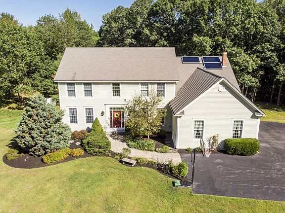 Stunning Colonial on 2.3-acre beautifully landscaped lot in desirable location. There is so much to love about this home featuring quality construction throughout. You'll appreciate the easy room flow, informal & formal gathering spaces, high ceilings, gleaming floors, abundant natural light & more. Smartly designed kitchen w/Bosch stainless steel appliances open to dining & living & deck overlooking utterly private backyard. Spacious bedrooms & master ensuite w/walk-in closet on the 2nd floor. Amenities include security system, central air, solar water heating system, 9' ceilings on 1st floor, generator hook-up, deck, patio & more. Daylight, walk-out basement offers potential to finish for more living or entertaining space. Enjoy this peaceful, quiet setting w/the convenience of intown amenities just 20 minutes away. Close to Apple Valley Golf Course and the Maine Turnpike for easy commutes to Portland or Augusta. This home must be seen to be truly appreciated. Septic System is designed for 3-bedrooms.