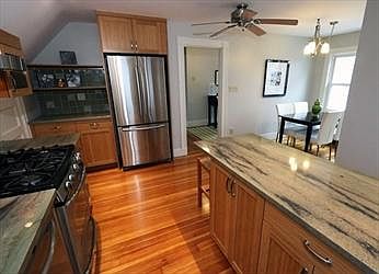 Spacious light-filled treetop one bedroom with a study! The beautiful fir floors have just been refinished and everything is freshly painted. The renovated eat-in kitchen has a breakfast bar/peninsula and bamboo cabinets with high-end stainless steel appliances. The kitchen has a pantry and a door leading to a private deck. Large fenced-in common yard. Storage and private laundry in the basement. Convenient to both the Porter Sq and Davis Sq Red Line MBTA as well as the future Lowell Station Green Line, scheduled for completion in 2020. Steps away from the Community Bike Path. Enjoy the hot Somerville entertainment culture of "Honk!", "ArtBeat", "PorchFest", and the "Somerville Dog Festival," to name a few. Davis Square is a great place to live with fantastic restaurants, shops, live music venues, and a new grocery store coming soon! Offers, if any, are due Tuesday, April 19th at 2pm.