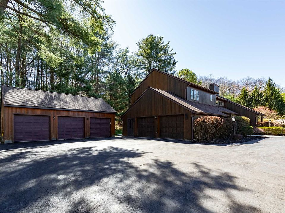 Motivated Seller. Expansive Contemporary located just minutes from charming Rhinebeck Village. Level one includes dramatic foyer, large eat in kitchen with solarium window open to dining room, living room with fireplace, family room with built ins, mudroom, two half bathrooms, indoor pool, hot tub, and sauna. Master bedroom, remodeled master bathrooom, three additional bedrooms, full bathroom and office are all on level two. Basement is partially finished with exercise room, cedar closet and plenty of storage. There is an attached two car garage, detached heated three car garage, and bluestone patio. Large corner lot is 1.51 acres. Professional landscape and mature trees create the perfect setting. Great location for all that the Hudson Valley has to offer.