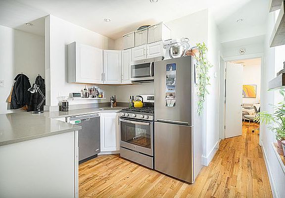 Spacious 2-bedroom With Renovated Kitchen and In-Home Washer/Dryer in Prime North Slope EMAIL IS THE PREFERRED METHOD FOR SHEDULING A SHOWING OR ANY OTHER INQUIRIES This third floor apartment offers flexible arrangement possibilities and two large split bedrooms. The centrally located living space includes a fully appointed kitchen with a suite of full-size stainless appliances and stone countertops. A peninsula with breakfast bar expands the counter space and dining area options, supplements the kitchen storage, and puts the kitchen in conversation with the open living room. There are two large bedrooms, each with ample closet space. A modern bathroom with vanity storage and soaking tub is tucked behind the kitchen in the center of the apartment. Modern amenities in this beautifully renovated apartment include an in-unit washer/dryer, fully appointed kitchen, and recessed lighting. Having recently undergone a complete modernization, the common areas have been updated and the building has been equipped with the Latch keyless security system, allowing residents to securely and remotely manage access. A full-time managing agent is professional and responsive, providing an online portal for rent payment and maintenance requests, as well as a dedicated superintendent. Subway stations nearby include the R-train at Union Street, along with the B, D, N, Q, R, 2, 3, 4 and 5-trains at Atlantic Avenue-Barclays Center. Enjoy outdoor dining or takeout from great local eateries on 5th and 7th Avenues like Katsuei, Bogota, Negril, Alchemy, Stone Park Cafe, Calexico, and al di la Trattoria. The main entrance to Prospect Park, home of the Grand Army Plaza Greenmarket (every Saturday, year-round), is just a short trip away.