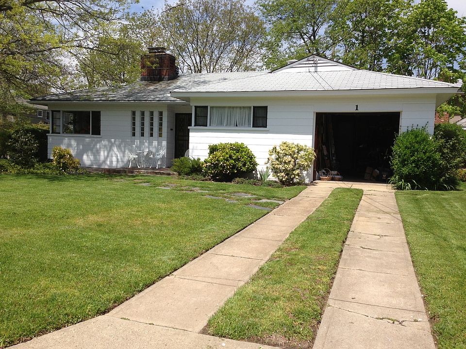 IN CONTRACT. Mid-century modern original - this custom designed, single level house was built in 1949 with three-bedrooms and two bathrooms. Although small in scale, it is light-filled and airy. The open layout includes a large living room with an ample dining area that opens off the kitchen, a brick fireplace, wood parquet floors, and floor to ceiling sliding windows that open onto the back terrace. Other features include attached garage with access into house, entrance foyer, and master bedroom suite. Recently upgraded to gas heating and new roof. The house sits on a very desirable Lindenmere Drive, corner lot, measuring .181 acres. Please call 718-404-6810 for a private showing.