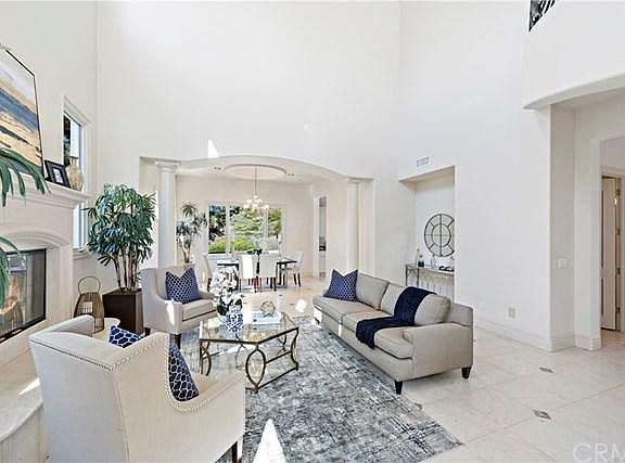 Breathtaking Estate w/ Panoramic Hillside & Canyon Views! Inside guard-gated Ocean Ranch lies this 5 bdrm+office, 5.5 bath estate w/well-appointed upgrades throughout! Soaring, double-story ceilings allow bright, natural light. Formal living room w/elegant fireplace & spacious dining room are perfect for entertaining! Gourmet kitchen w/granite counters, SubZero fridge/freezer, center island & sunny breakfast nook w/gorgeous views. Large family room (addtl 200+ sqft added) w/dramatic fireplace, custom built-ins, wet bar & open-concept floorplan that is perfect for entertaining & relaxing. Main floor bdrm w/adjacent full bath is ideal for overnight guests! Stunning limestone flooring throughout main level! Gaze upon the twinkling lights & rolling hills from the resort-inspired backyard w/stone patio, pool&spa, built-in BBQ/bar & drought-tolerant landscaping. Luxury living continues upstairs in the master retreat featuring serene canyon & rolling hill views, seating area w/fireplace, oversized closet w/ built-ins & French doors leading to private balcony. Spa-like master bath features second walk-in closet, jetted tub, & bonus area perfect for an exercise room or private office. Separate office and three addtl ensuite bdrms w/adjoining balcony complete the top floor. Recessed lighting throughout! Ocean Ranch amenities include a pool, playground, basketball court & 24-hour security. Blue Ribbon schools, outdoor recreation & shops/entertainment nearby. Only 2.5 miles to the Ocean!