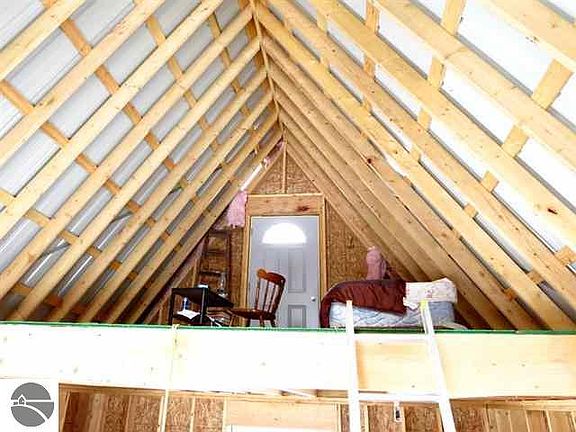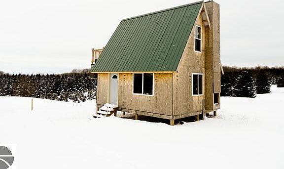 Great fixer upper opportunity to own an inexpensive getaway cabin on a beautiful 4.94 acre rolling parcel amongst tall Spruce trees with expansive countryside views looking west toward Crystal Mountain. Property being sold as-is. Cabin is built on wood piers with a metal roof, wood burning insert stove and loft with small exterior deck. There is no electric nor any plumbing fixtures in the cabin, but a well has been partially installed. You'll regret missing this one if you are in the market for an affordable countryside escape in northern Michigan just 7.5 miles from Crystal Mountain and 35 miles southwest of Traverse City. Deed restrictions on this and adjoining properties prohibit single wide trailers. Seller will consider land contract with 50% down payment.