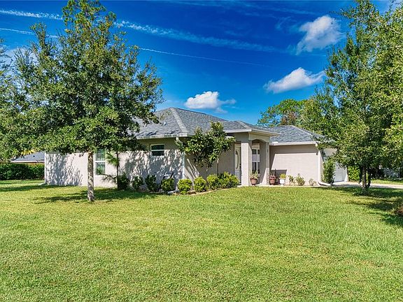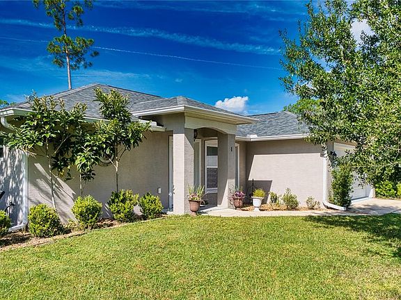 Nestled in the highly sought-after Quail Hollow community of Palm Coast, this beautifully maintained 3-bed/2-bath home combines comfort, privacy, and convenience near shopping and everyday amenities. Wood-look ceramic tile flooring runs throughout the main living areas, complementing soaring cathedral and tray ceilings and decorative plant shelves for a light, open feel. The kitchen features rich wood cabinetry, granite countertops, and stainless steel appliances—perfect for everyday cooking and entertaining. The spacious primary suite offers a tray ceiling, two walk-in closets, dual vanities, and a large walk-in shower. Enjoy Florida living on the screened, covered porch overlooking an oversized corner lot that provides exceptional outdoor space and privacy. Additional perks include an inside laundry room and thoughtful finishes throughout. A wonderful place to call home in one of Palm Coast’s most desirable areas.