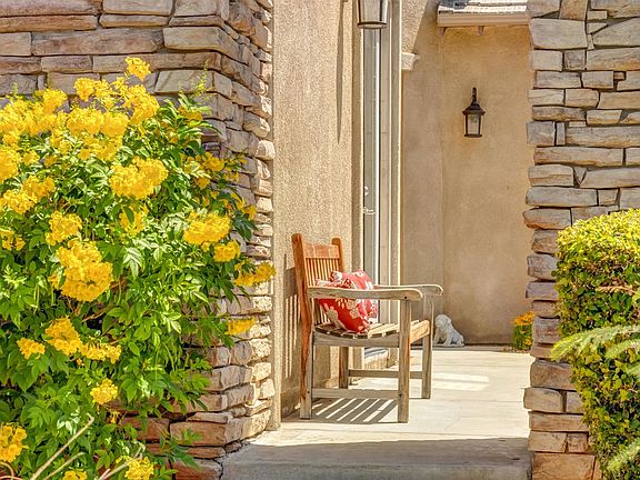 Extensive, high end remodel around the lake at Mission Shores. The home had a recent remodel of all rooms. The kitchen has a large center island with dual stainless steel sinks and gorgeous slab granite waterfall counter & built-in, dual zone wine fridge. Matching stainless steel Bosch appliances with convection microwave, gray toned cabinets with stainless pulls, under cabinet lighting & stone & stainless backsplash make this a true entertainer's kitchen. Large family room, dining area and wet bar are open and spacious for all of your gatherings. The entire home has stunning, gray porcelain plank-like tile and 5 inch baseboards. Main bedroom & family room have crown molding. All bedrooms are separated by a hallway. Bedroom 3 has exterior double doors and can be used like a Casita. Showers in 2 baths have 7 foot custom glass surrounds. The main bath is like a spa with huge soaking tub, large rain shower and wand, separate rich dark brown vanities with vessel sinks and a large walk-in closet. Main bedroom has wood shutters and a Southern and Western mountain views. Backyard spool is easy to maintain and is your pool in the warm months and large spa in the colder months. The home's HVAC system was replaced in Dec 2013 with a 5 ton, high efficiency variable speed unit. A 6.9 Watt owned Solar system with enough power to charge an electric car & keep the A/C at a very comfortable temp. HOA includes cable tv, internet, front yard maintenance and social membership at MHCC.