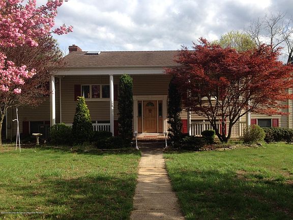 Location. Location. Desired premium 1 acre lot in Clover Hill section of Colts Neck. Enjoy this 4 bedroom, 3 full bath home with eat in kitchen and backyard deck with sauna and covered porch in time for Spring. Some of many updates include new central air unit, gas heating system (not oil), security system, kitchen tile floor, washer/dryer and refrigerator. Hardwood floors throughout upper level along with a 3 season room for entertaining. Great layout with open dining room and cozy fireplace in living room. Lower level has a spacious walkout family room with a second fireplace, built in bookshelves and recessed lighting. Easy commute to Rt 9, Parkway and Rt 18.