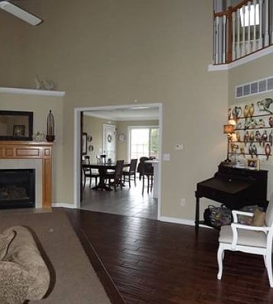 WOW! Enjoy the beautiful view of the setting sun over the Den Golf Course in Fox Creek. Outstanding zero-lot line home will take your breath away when you open the door to a two-story Great Room w/ hardwood walkway,spacious KT with lots of white cabinets incl. island. Sliding door to fenced backyard & door to screened in porch. You won't feel cramped in on this large cul-de-sac lot. 1st floor Master Bedroom & UT, 2 large bedrooms up and a 4th in the LL. Home shows much pride of ownership. 3 full baths!