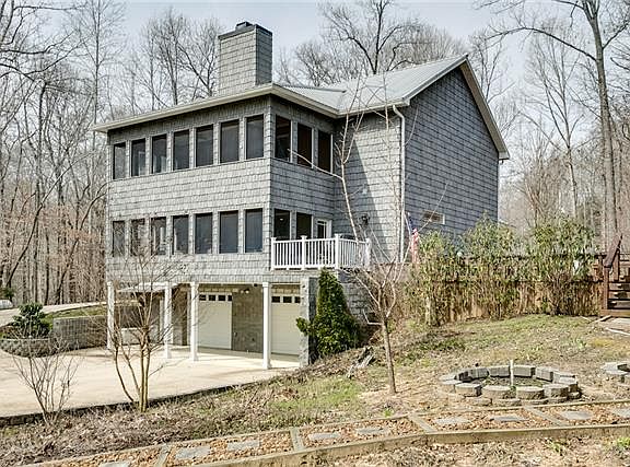 Stunning River home with 345+ foot water frontage with dock and boat shed. No stairs to get to river, nice gentle slope. Quality construction with open layout, nine foot ceilings up and down, two screen porches, 1400 sq. ft. 2 car garage.