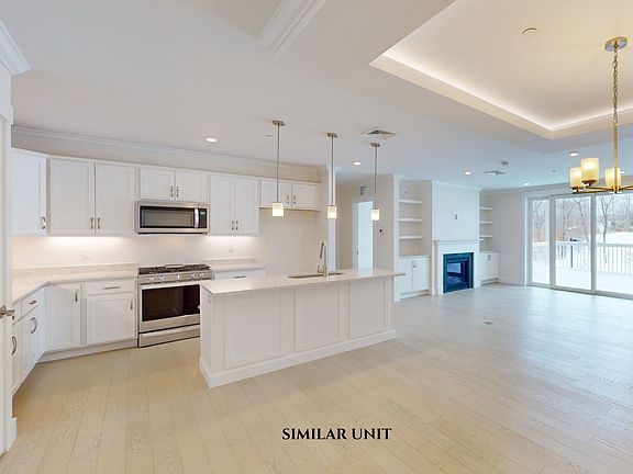 Welcome to Atkinson Heights, a premier 55+ community! The ‘MASSABESIC’ is designed for comfort, style, and convenience, offering 1,452 sq. ft. of thoughtfully designed living space for those that could benefit from wheelchair accessibility. This 2-bedroom, 2-bath unit has an open-concept kitchen, living, and dining area—perfect for entertaining. Engineered wood floors throughout, recessed lighting, crown molding, a gas fireplace, and a tray ceiling over the dining area for added elegance. The kitchen boasts a 7-ft island with quartz countertops, soft-close cabinetry, under-cabinet lighting, pendant lighting, a pantry closet, and stainless-steel Whirlpool appliances. The primary bedroom is filled with natural light and includes ample closet space and a bathroom with a zero-step, fully-tiled walk-in shower, and a double vanity with quartz countertops. Enjoy the sunrise and take in the year-round beauty of the manicured grounds, and seasonal views of the Community Center and 18th tee at the Atkinson Resort & Country Club. Each unit includes an assigned space in the heated garage, additional storage, and an outdoor parking spot. The Community Center features a great room, kitchen, fitness center, outdoor patio, firepit and grill. Enjoy the community garden and dog park - all just minutes from shopping, medical facilities, and major highways. All occupants must be 55+. Pictures are of a similar unit.