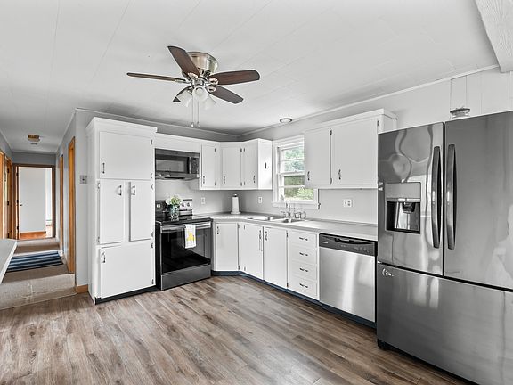 Welcome to 1 Loudine Avenue! This one level ranch sits on a well landscaped, spacious corner lot in a charming residential neighborhood. When you enter the home there is a large mudroom that separates the one car garage from the living space and offers access through sliding glass doors to the stunning backyard. Upon entering the home you are greeted with an open concept dining, kitchen and living room. The kitchen has a cute bar, ideal for stools, overlooking the living room. The living room boasts hardwood floors and a large window for natural light. Off the kitchen and dining space is another room that could be used as an office, playroom, formal dining room, etc... down the hallway you will encounter three size able bedrooms also boasting hardwood floors, each equipped with their own closet. This home offers so much potential for the future homeowner to move in and have a blank canvas to create your own breathtaking abode. Check out the 3D tour! And did I mention the Swift River is just across the main road with seasonal views? Don't miss your chance to own this affordable home in a remarkable area!