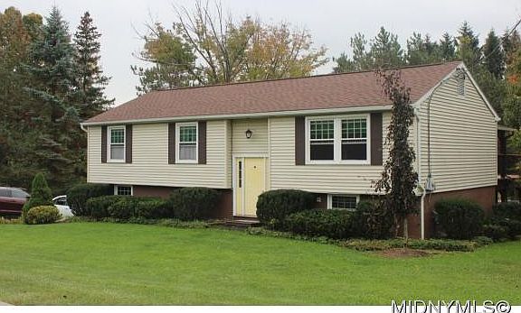 Raised Ranch home sits on 2 lots with gorgeous landscaping. House includes kitchen w breakfast bar, dining area, living room, 3BRs, 2 baths. Basement garage and laundry plus family room with gas fireplace. Yard is 2.85 acres and includes sheds, above ground pool, deck.