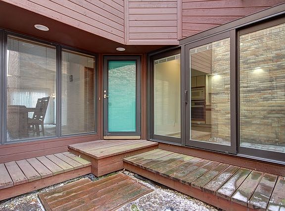 Welcome to this one of a kind condo with soaring ceilings and a uniquely curved wall! The main level offers a bright eat-in kitchen with white cabinets and a breakfast bar. There is a separate dining room, a step-down living room with beautiful new flooring that opens to a private deck, and a bedroom with full bath. The second floor offers a master bathroom, new engineered hard wood floors, new blinds on all the windows and sliding doors. The condo fees covers snow removal, lawn care, and insurance for fire damage and other hazards to the building.