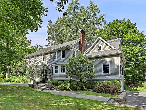Granoff Architects designed Cedar Shake skirted 5 bedroom colonial privately set on the corner of two cul-de-sacs. Two majestic acres of sweeping lawn, lush gardens and landscaping, bluestone patio and stone walls offer the ideal outdoor entertaining space. The sun-filled first floor has an open floor plan allowing for a natural flow between the formal and informal spaces. Seamless entertaining space and easy everyday living space. The large chef's kitchen with French doors open to covered porch with views of the serene landscape. Second level offers an elegant master suite leads to a grand master bath. Walk-Out Lower Level w/sliders to patio w/fountain. Extensive perennial gardens all around. Completely rebuilt in 2007. Pool Site Possible. Close to schools. $1308 STAR deduction possible. 15 minute drive to North White Plains train station for 38 minute Express trains to Grand Central. 50 minutes to NYC.