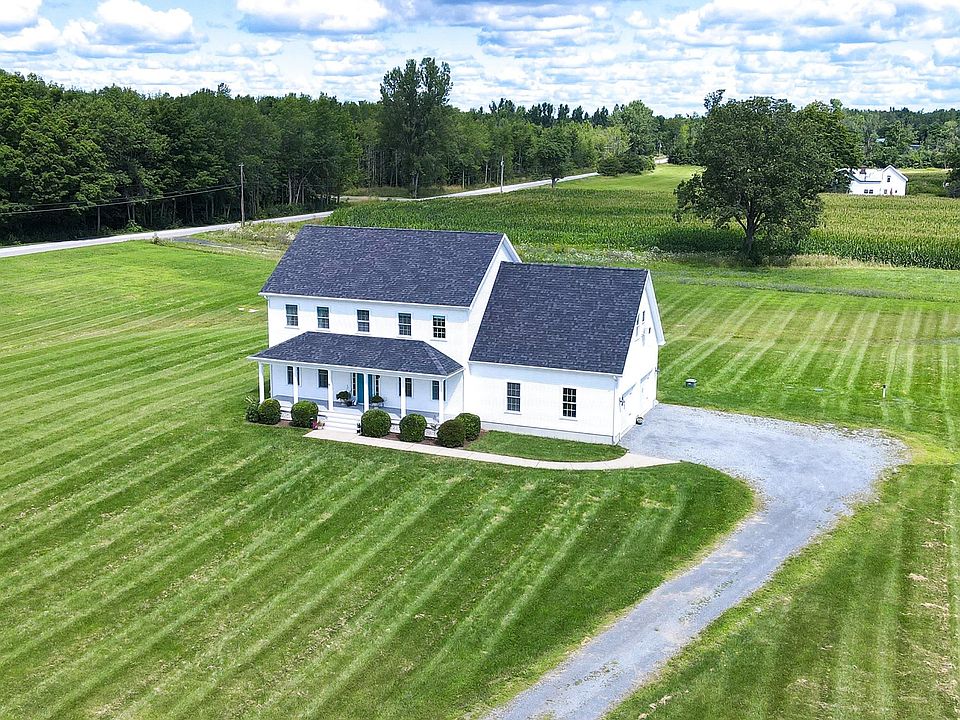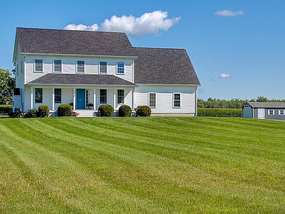 You will want to make an appointment to see this classic Colonial built in 2015 with a gracious covered front porch on a 2.8 acre level lot with pastoral and seasonal mountain views. The open design of the Kitchen and Living area is filled with natural light and complimented by large windows. The beautifully appointed kitchen has porcelain tile floor, granite countertops, large Island, stainless appliances, and lots of storage and includes cherry cabinets with soft close drawers. The adjacent 27 x 14 foot living room has wide maple floors, an attractive Gas Fireplace with slate surround and opens to a large rear deck and patio. The shaded patio that runs the length of the home is a great outdoor living space and grilling area and includes a Hot Tub. The 1st floor includes what could be a formal dining room or office which faces South. Upstairs you will find 4 spacious bedrooms and a 15 x 12 foot bonus room over the garage, which could also serve as one of the bedrooms or an office or studio.The washer and dryer are also located on the 2nd floor. Start and finish each day in the lovely master bedroom with a large walk-in closet with built-in shelving and an ensuite ¾ bath with nice tile work and vanity with a granite top. Additionally there is a 1000 + square ft unfinished basement with high ceilings and a 2nd set of stairs to the oversized 2 car attached Garage. Property is 5 minutes from Ladd's Landing Marina, Marycrest Beach, and Vantine's State Boat Launch.