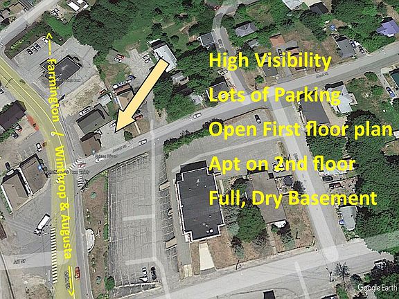 This property has so much potential – Great visibility, location and lots of parking. Are you looking for a business site for accounting, real estate, property management, therapy, bakery, retail or leave it as it is – a hair salon. A double lot with a large, paved parking area and a 1-bedroom apartment on the second floor to help with the mortgage. The building is in great condition, it has hot water baseboard heat, a dry basement, vinyl siding and extremely high visibility to traffic on a major through road to Farmington, Mt Blue State Park, Sugarloaf & Sunday River skiing. This would be a good addition to an investment portfolio.