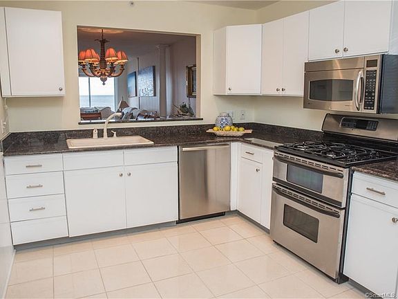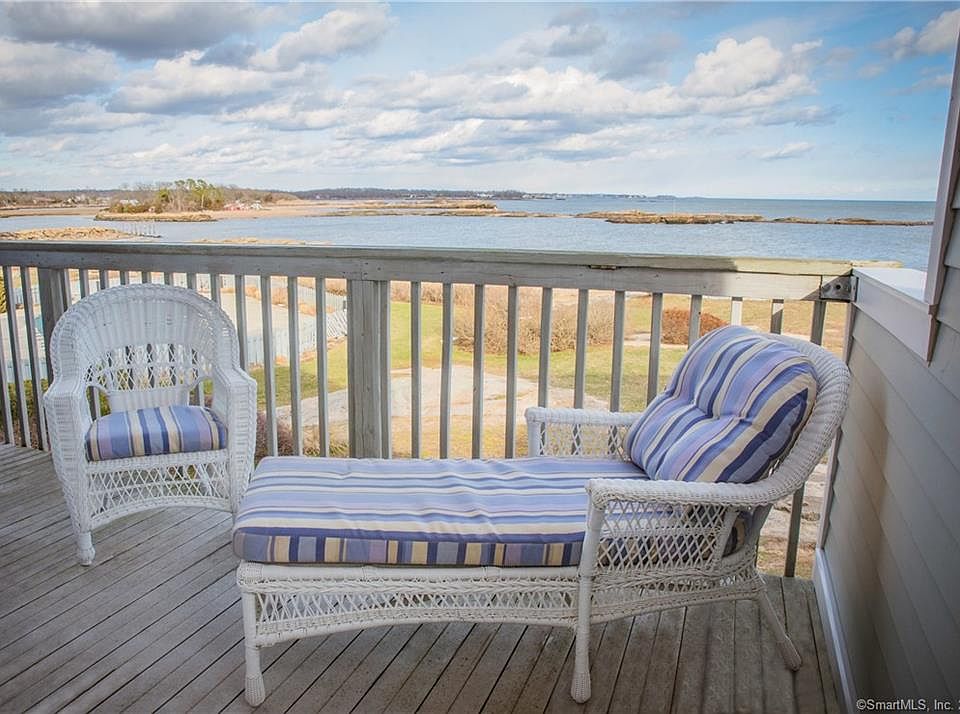 Direct waterfront with the best views in the complex...Everyday feels like vacation when you step into this amazing 2 bedroom, 2 bath, ranch style unit. Open concept living allows spectacular water views from almost every room. The clean and updated eat-in kitchen with white cabinets, stainless appliances and granite countertops, opens to dining and living area with hardwood floors, wood burning fireplace and slider to deck/balcony overlooking Long Island Sound. Each of the two generous bedrooms are complete with walk-in closets. Looking for convenience? Laundry located in unit, covered parking, elevator, gas heat, central air. Don't forget to enjoy the complex's many amenities including in-ground pool, tennis court, bocci court, clubhouse, and private beach access. Come find the luxury living you deserve!