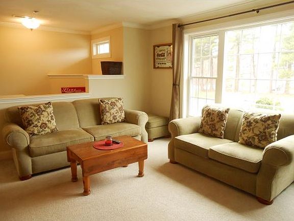 There is pride of ownership throughout this spacious and airy open concept townhome. Kitchen has updated cabinets and a new dishwasher. Large dining room has gas fireplace with glass doors and lovely mantle. The beautiful picture window in the spacious living room lets in lots of natural light. There is a huge walk in closet off the kitchen, a pantry closet and coat closet providing efficient storage. The upstairs features a roomy landing that can be used as office, workspace or playroom. There is a second floor laundry, and extra large storage space. A small hallway leads to the second floor full bath and to the Master bedroom which has a walk in closet. A pocket door closes this area off making it into a Master suite. Master has a remote controlled ceiling fan. Second bedroom has two walk in closets. This lovely townhome is in turn key condition just waiting for you to move right in. Convenient to Rt 3 exits 12 and 13. Great opportunity for first time home buyers.