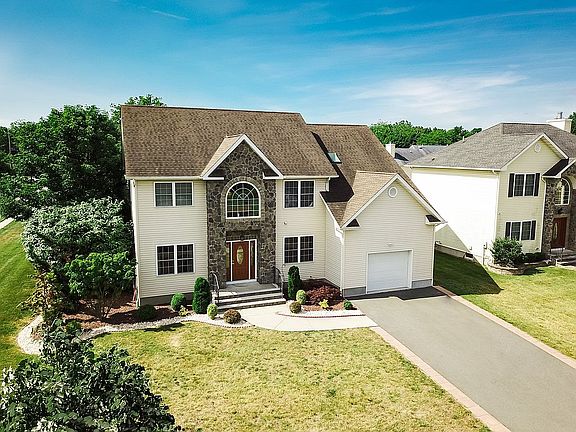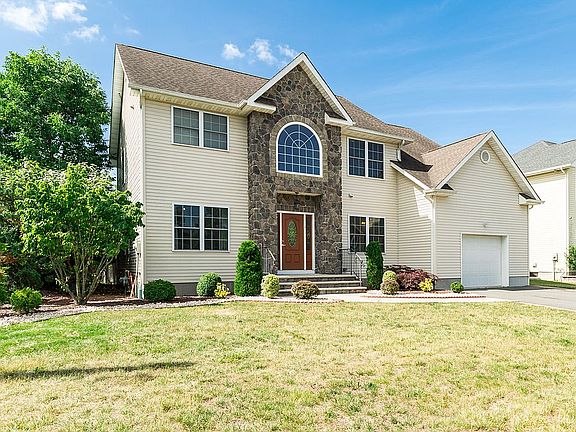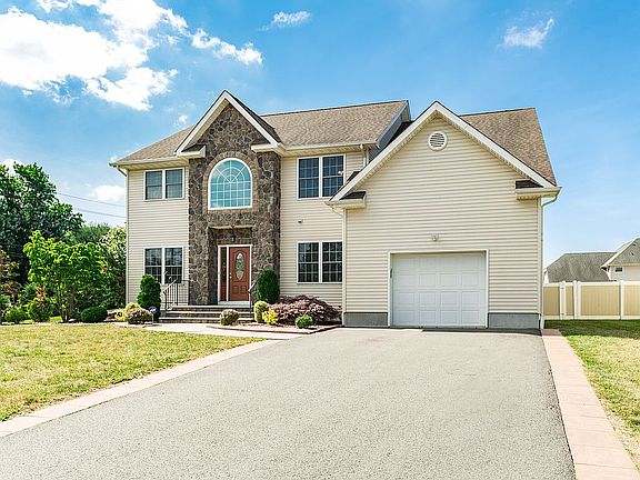 North Facing 5 Bedroom 4 bath beautiful 9 years young Colonial at Flower Farm Development.First floor features a Bedroom with adjacent full bath, beautiful hardwood floors throughout the 1st floor bedroom, 2 story foyer, formal dining room and kitchen. Kitchen features a Very Large island with granite tops and marble back splash, stainless steel appliance package, separate eating and sliders that lead to a fully fenced yard. Kitchen has open view of 20 x 15 family room, Perfect for entertaining.Second floor features 2 amazing Masters with en-suites.The larger one measures 20 x 15 and the en suite features a large Jacuzzi tub, stand up shower and double sink vanity. All generous sized bedrooms, second floor laundry. Full Basement approximately 1370 sq.ft with Superior walls insulated and studded ready to be finished. Solar Panels that make sense! Recently professionally landscaped. Must see! High end finishes throughout!