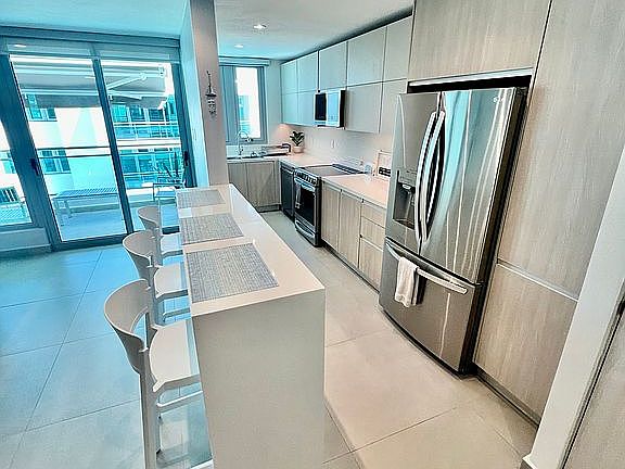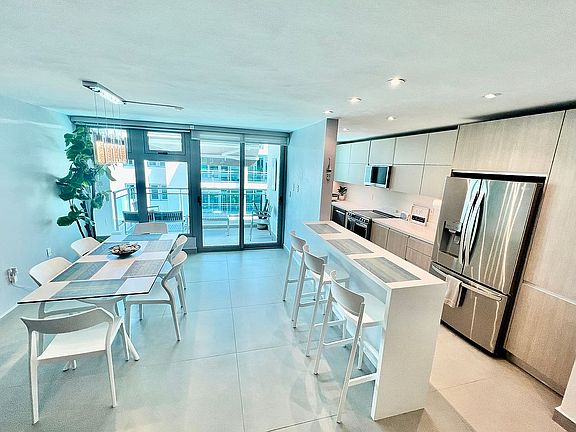 Isla Verde Beach Apartment 3/2 – NEW Construction (2023) – FULLY FURNISHED!! 1347 sq.ft., 2 parking slots, pools, gym, gated community with 24-hour security and a smart double entry access control system, visitors parking. Comfortable modern and stylish BRAND-NEW beach PH apartment at Solemare Cond, Isla Verde (BUILT IN 2023), located on marginal street of Baldorioty De Castro Ave (PR #26), shortly after España Bakery, in centric location close to the Isla Verde Beach (2 miles), one of the best urban beaches in the world and the Isla Verde tourist area. With onsite full power backup generator. Located inside a gated community with 24-hour security and a smart double entry access control system, one on the main gate for cars, and another one on the building glass door, which can be accessed with a key fob. Also, the main gate can be accessed with a car sticker and the building glass door can also be accessed electronically through an app to provide access to visitors and includes a camera for additional security. Very close to SJU Airport (2 miles), Piñones-the local food, casual, beach front, gastronomic area (3 miles), La Placita de Santurce (3.8 miles), Old San Juan (7 miles), Condado (4.5 miles), Distrito T-Mobile (5.5 miles), Mall of San Juan (3.5 miles), El Yunque Rain Forest (24 miles), etc. With easy access through the Baldorioty de Castro Expressway or the Teodoro Moscoso Bridge. Comfortable 3 bedrooms & 2 bathrooms penthouse apartment, totally furnished, with Pools & POWER GENERATOR for the whole apartment. Located at the brand new Solemare Condominium. Total space is 1347 sq.ft. (125.19 sq.mt.) and consists of a Master Bedroom with a king size bed, walk-in closet and en-suite private bathroom with his and hers vanities and modern stylish shower; a Second Bedroom with a queen size bed; a Third Bedroom with Full/Full Bunkbeds and an elegant height adjustable desk allowing comfortable work or study space; a second bathroom with a tub located in front of the second and third bedrooms; comfortable living and dining areas; a linen closet between the bedrooms; an enclosed comfortable functional laundry room with large capacity washer and drier, a sink and additional storage; a beautiful balcony view to the pool area; and an elegant kitchen with modern cabinets and a breakfast counter with stools. Great picture windows provide natural light. Windows and doors are energy efficient. Solar water heater. Recessed lightning in the kitchen and master bedroom The kitchen has beautiful white quartz countertops, includes great pantry storage and brand-new high-end LG stainless steel appliances including refrigerator/freezer, 5 burners electric stove, convention/convection oven, large microwave oven with air frying capability, dishwasher, and sink food disposer. There is air conditioning in all bedrooms and common areas, high speed internet with WIFI and Ethernet cable connection throughout the apartment. Includes all kitchen essentials like pots, pans, utensils, glasses, wine glasses, plates, etc. so you feel like you are home! Very close to plenty of restaurants, bars, hotels, clubs, and entertainment, in additional to many touristic attractions like those mentioned above, as well as many others. The property includes 2 private parking slots in front of the building. Guests will have access to the whole apartment except a small closet. Will also have access to the community's pools with in-pool lounge chairs area, and BBQ Grills. A second pool (in addition to the pool shown in the pictures), a fully equipped gym, a dog park and visitors parking are also expected to be operating by late November 2023 (we cannot guarantee this date, please confirm with host if it is already available by the time of your stay). Uber is widely available in the area if you prefer not to drive, with easy access to Isla Verde, Old San Juan and Condado tourist areas.