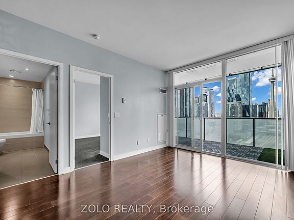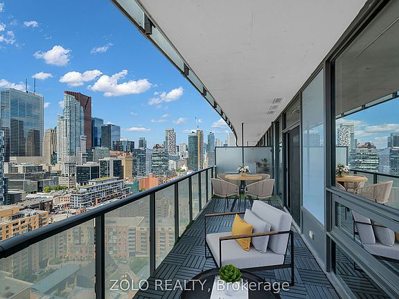 Now available for immediate possession. West facing, ICONIC views of downtown Toronto and surrounding landmarks. UNOBSTRUCTED view of CN Tower, including from your future living room and bedroom! This is the ultimate WFH backdrop flex.The HUGE balconyyour private sky lounge and ample greenp parking adjacent to the unit mean you can spend HOURS entertaining, hosting epic sunset sessions with friends, or enjoying a quiet morning coffee while the city wakes up below.The location? Its a 10/10. You're literally STEPS to the best of Toronto. Bike share located inside the building! Surrounded by dog parks! 9 min walk to King station subway. 6 min walk to King 503/504 street car. 4 min walk to Loblaws/Farm Boy/LCBO/Wine Rack. 9 min walk to sugar beach/waters edge. Go for a run along the Harbourfront, chill with a book at Sugar Beach, or catch a game at Scotiabank Arena. Everything that makes Toronto electric is a short walk away. Ditch the rideshare fare; you're already there.Foodie Paradise: Grab fresh bagels and artisanal everything from St. Lawrence Market for a weekend brunch that hits different. Explore the cobblestone streets of the Distillery District for the city's coolest patios and hidden cocktail bars. Your foodie adventures are endless.This isn't just a condo; it's a launchpad for the lifestyle you've been dreaming of. It's where convenience meets cool, and the best view in the city is yours. Don't let this one become a story you tell about 'the one that got away'. This is a MUST SEE so book your showing now!Photos show virtually staged unit.